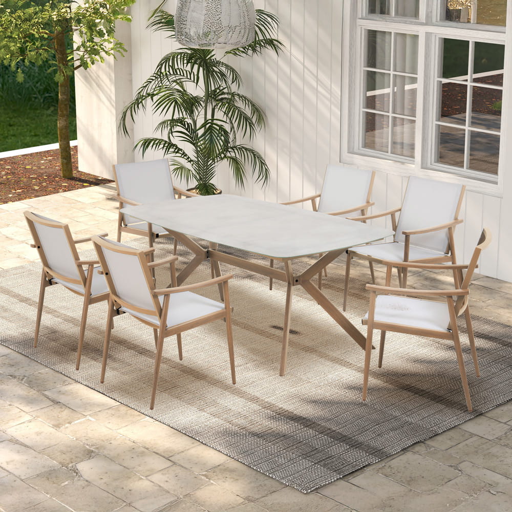 | Состав | Каркас стола из алюминия, с порошковым покрытием. Керамическая столешница. Алюминиевый стул, с порошковым покрытием. |