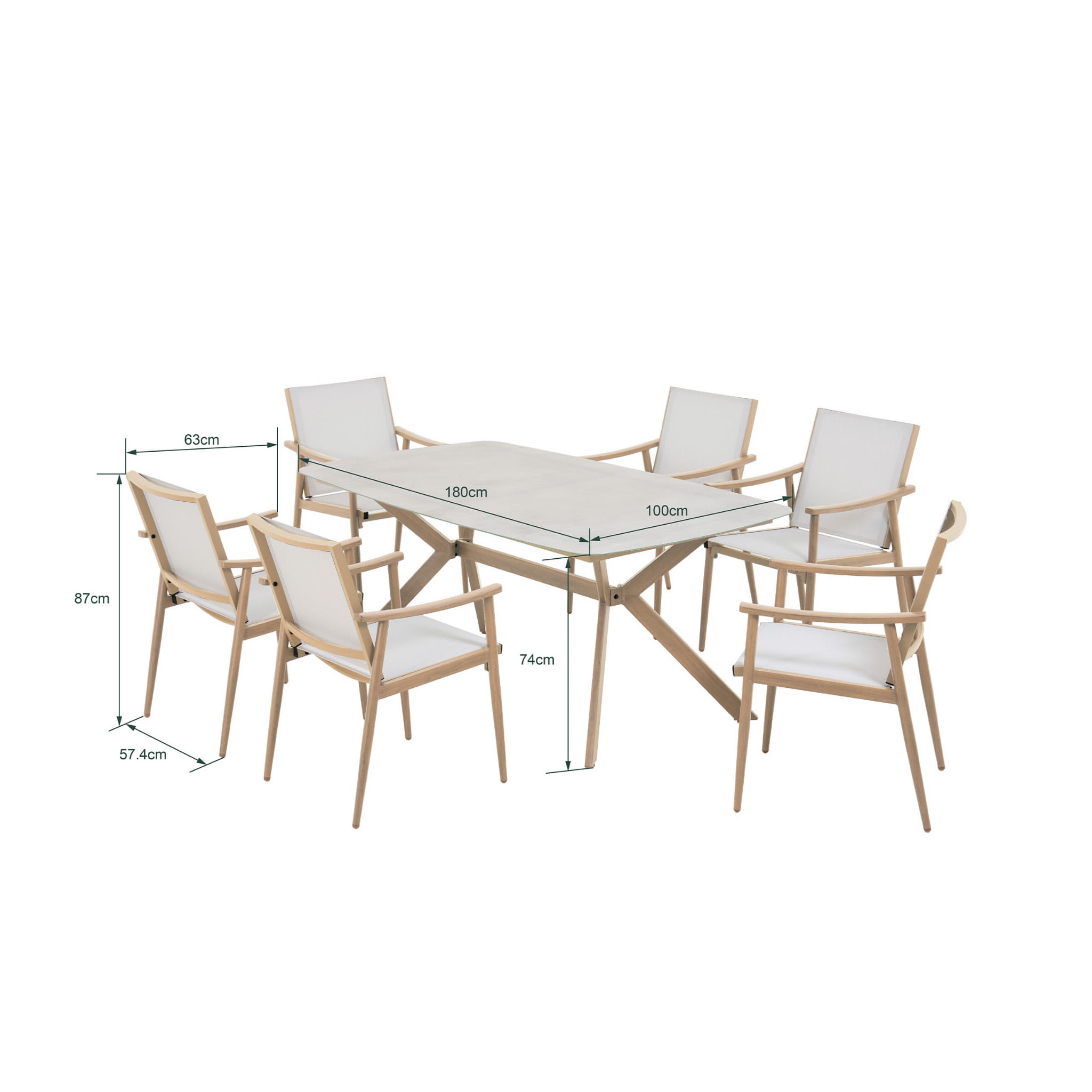 | Размер | Комплект из 7 предметов: 6 стульев, стол. |