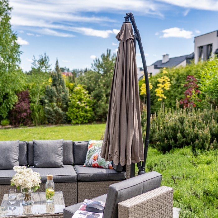 Зонт практичен и функционален. Его регулируемая конструкция позволяет оптимально настроить его под нужды пользователя. Большой купол обеспечивает тень на большой площади для отдыха. Благодаря используемым материалам он прослужит долго. Коричневый зонт выделяется своим классическим дизайном, идеально дополняя любой дизайн патио или сада.