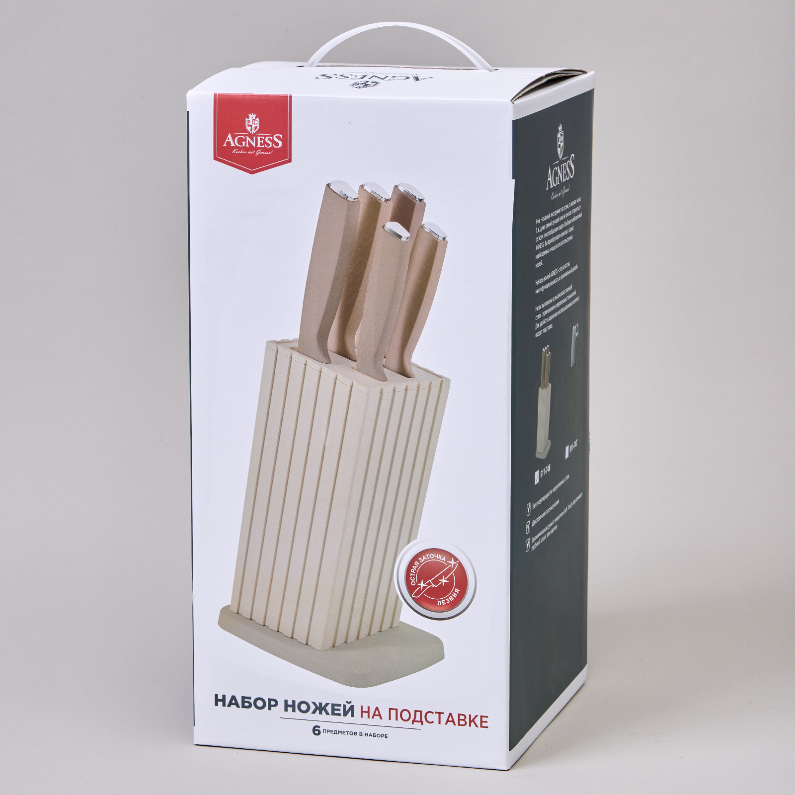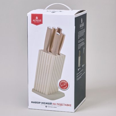 НАБОР НОЖЕЙ AGNESS НА ПЛАСТИКОВОЙ ПОДСТАВКЕ, 6 ПРЕДМЕТОВ